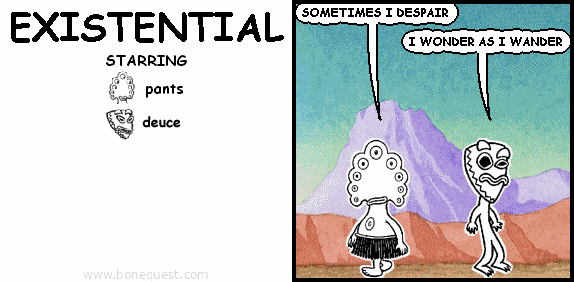 pants: SOMETIMES I DESPAIR deuce: I WONDER AS I WANDER