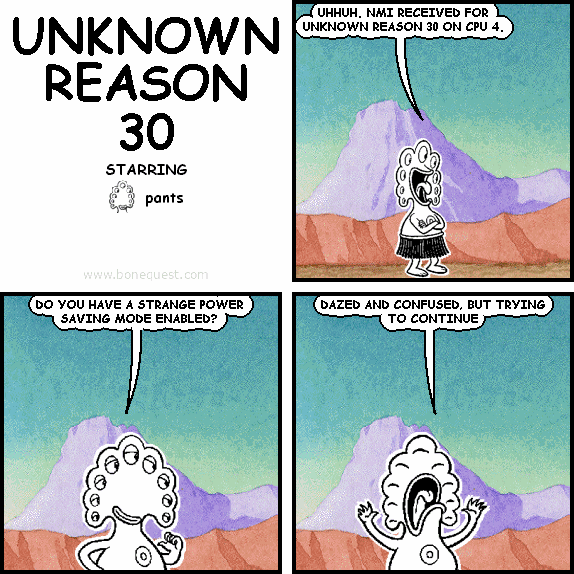 pants: UHHUH. NMI RECEIVED FOR UNKNOWN REASON 30 ON CPU 4. pants: DO YOU HAVE A STRANGE POWER SAVING MODE ENABLED? pants: DAZED AND CONFUSED, BUT TRYING TO CONTINUE